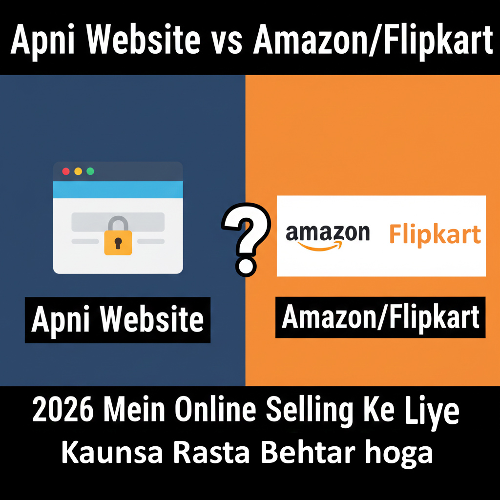 Apni Website vs Amazon/Flipkart- Doston, jab hum online business shuru karte hain, toh hamare dimaag mein ek sapna hota hai: “Apni website hogi, apna brand hoga, aur koi commission nahi dena padega!” Maine bhi yahi sapna dekha tha. Maine WordPress par apni website banayi, payment gateway lagaya, aur products list kiye. Lekin kya asliyat utni hi sundar hai jitni dikhti hai?